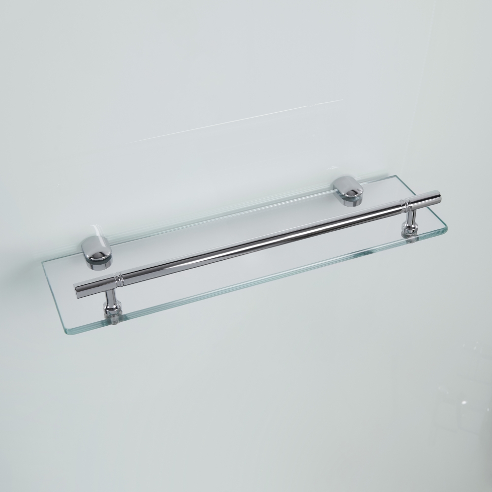 Прямоугольная стеклянная полка. Встроенное сиденье. Ножки поддона регулируются по высоте.