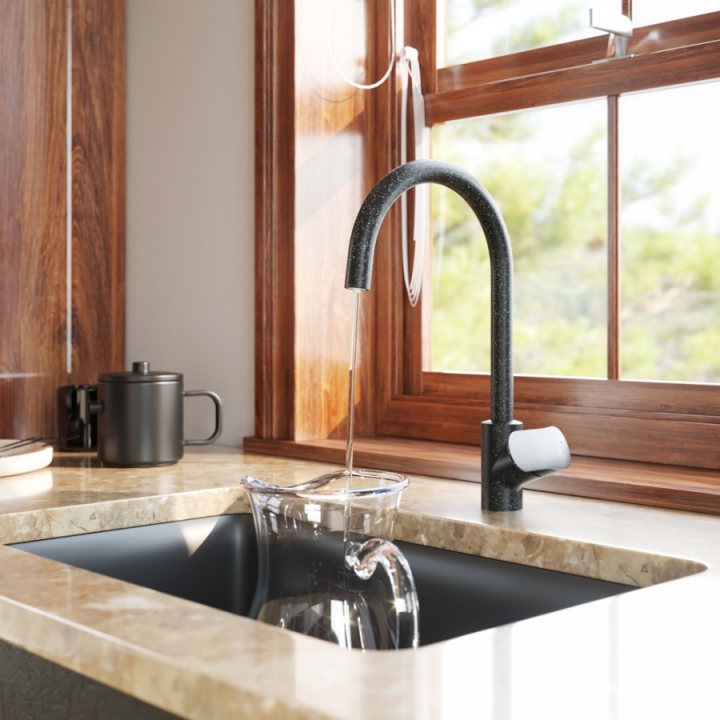 Кухонный смеситель АМ.РМ со встроенным каналом для питьевой воды успешно совмещает в себе два в одном. Благодаря прогрессивной технологии Fresh Boost при вращении ручки на 90 градусов вы можете наслаждаться чистой водой из фильтра. Если же Вам нужна обычная вода, смеситель управляется привычным способом. Также, конструкция, совмещающая в себе 2 в 1, экономит место и придаёт кухне опрятный вид без лишних элементов.