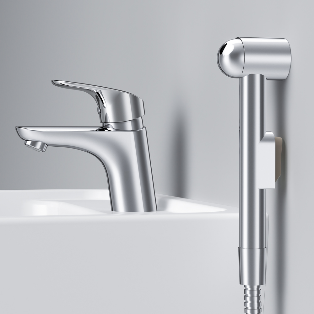 Смеситель для раковины с гигиеническим душем AM.PM F8003000 LikeВпервые модный дизайнерский смеситель в доступном сегменте: ультрамодный стиль Dynamic Organic — природные формы в сочетании с четкими линиями, доведенными до совершенства человеком.