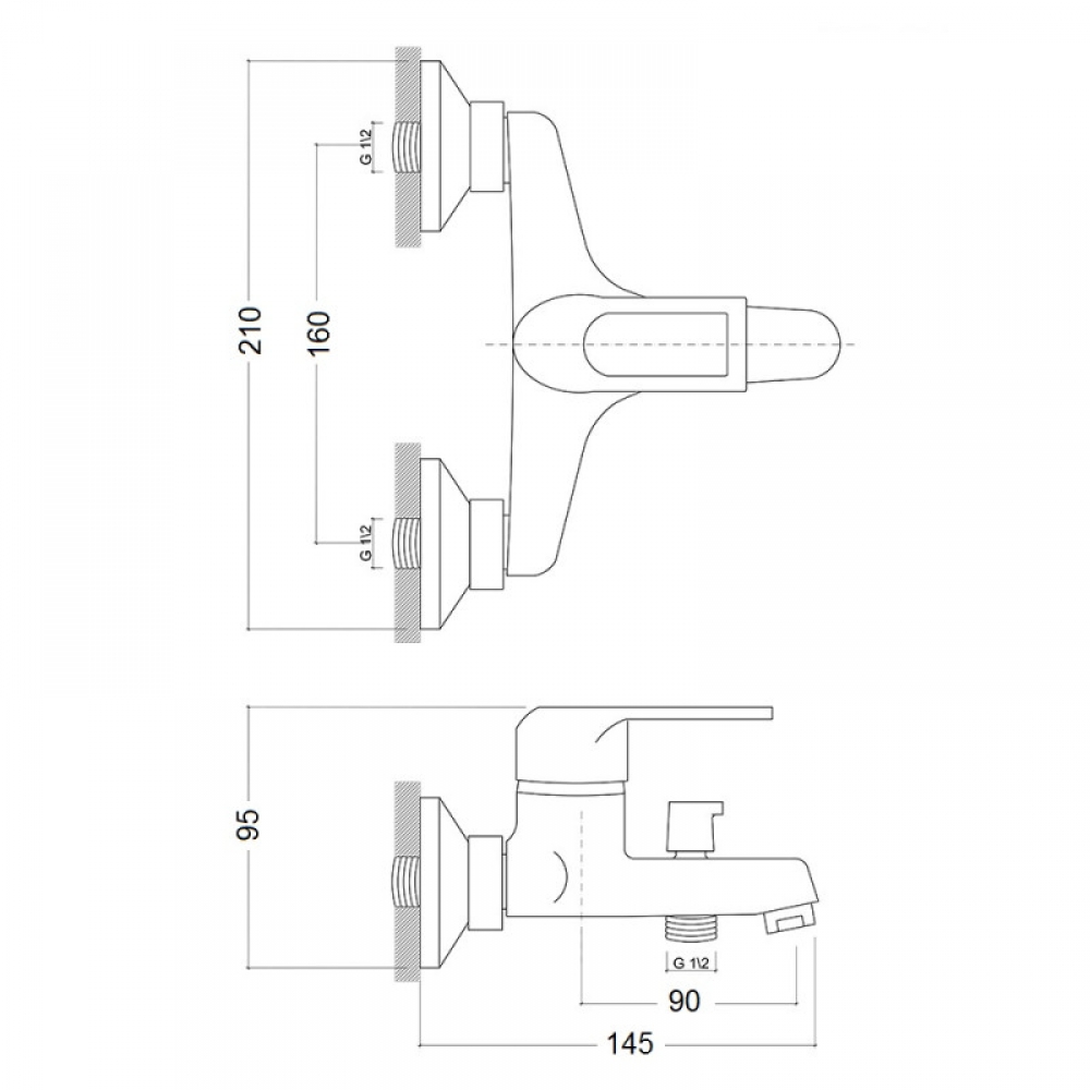 Смеситель, лейка для ручного душа, душевой шланг, кронштейн для ручного душа, крепежи.