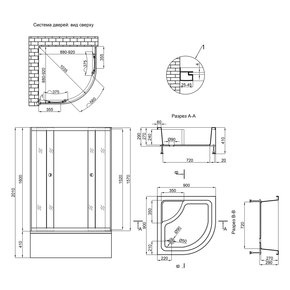 Поддон, двойные ролики, ручки, комплект крепежей, глухое стекло, стеклянные двери, душевой поддон, панель, профиль, ножки.