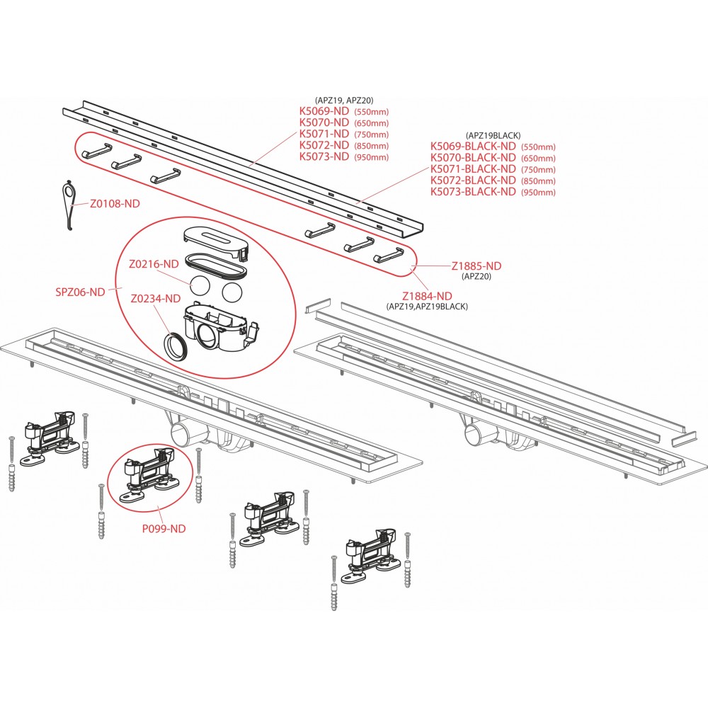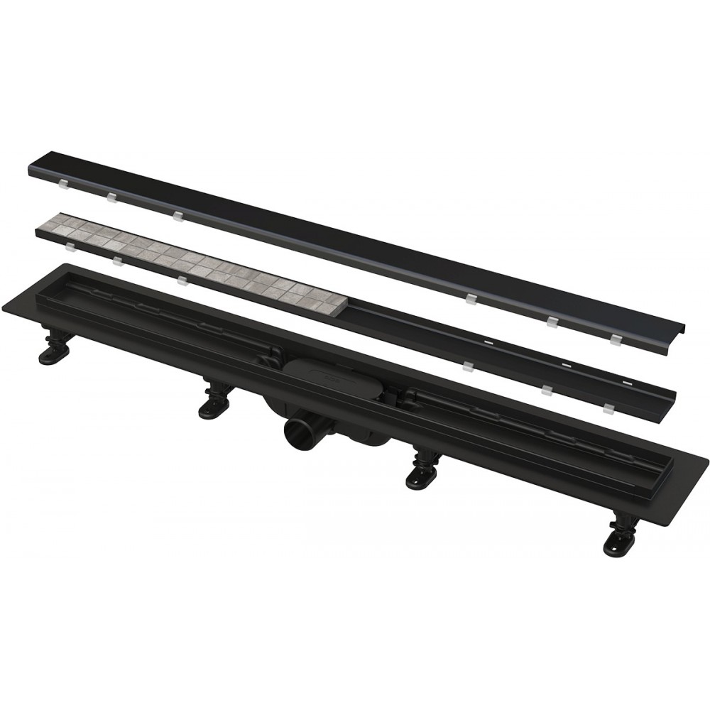 Водовідвідний жолоб Alcaplast APZ19BLACK Simple. Двостороння решітка DOUBLE (повна решітка або решітка під кладку плитки), горизонтальний випуск